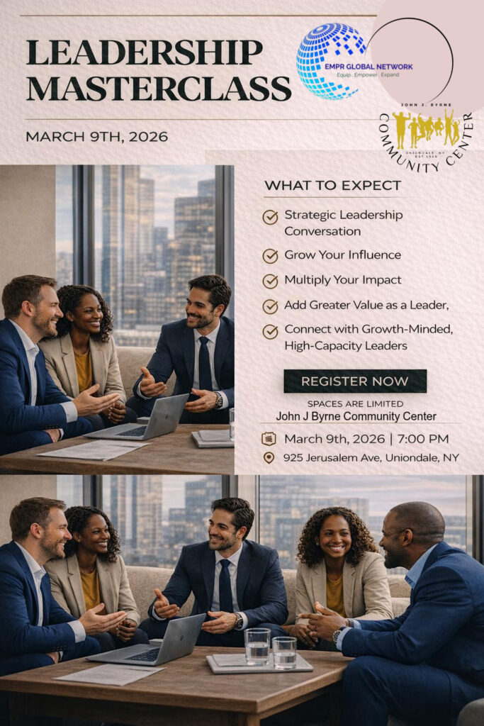 Join us for an exclusive Leadership Masterclass designed for growth-minded professionals ready to elevate their leadership presence, expand their influence, and multiply their impact.